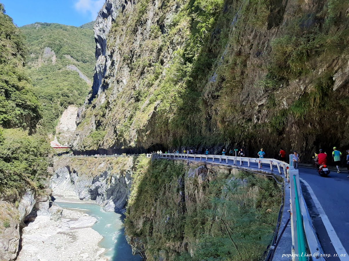 隔日清晨,起了個大早到七星潭看日出,遂後,大夥聊到了今年太馬改回燕子口隧道的遺憾,臨時起意又開車進入太魯閣,重訪念茲在茲的燕子口步道,也算是不愧怡真遠道而來的初太馬。