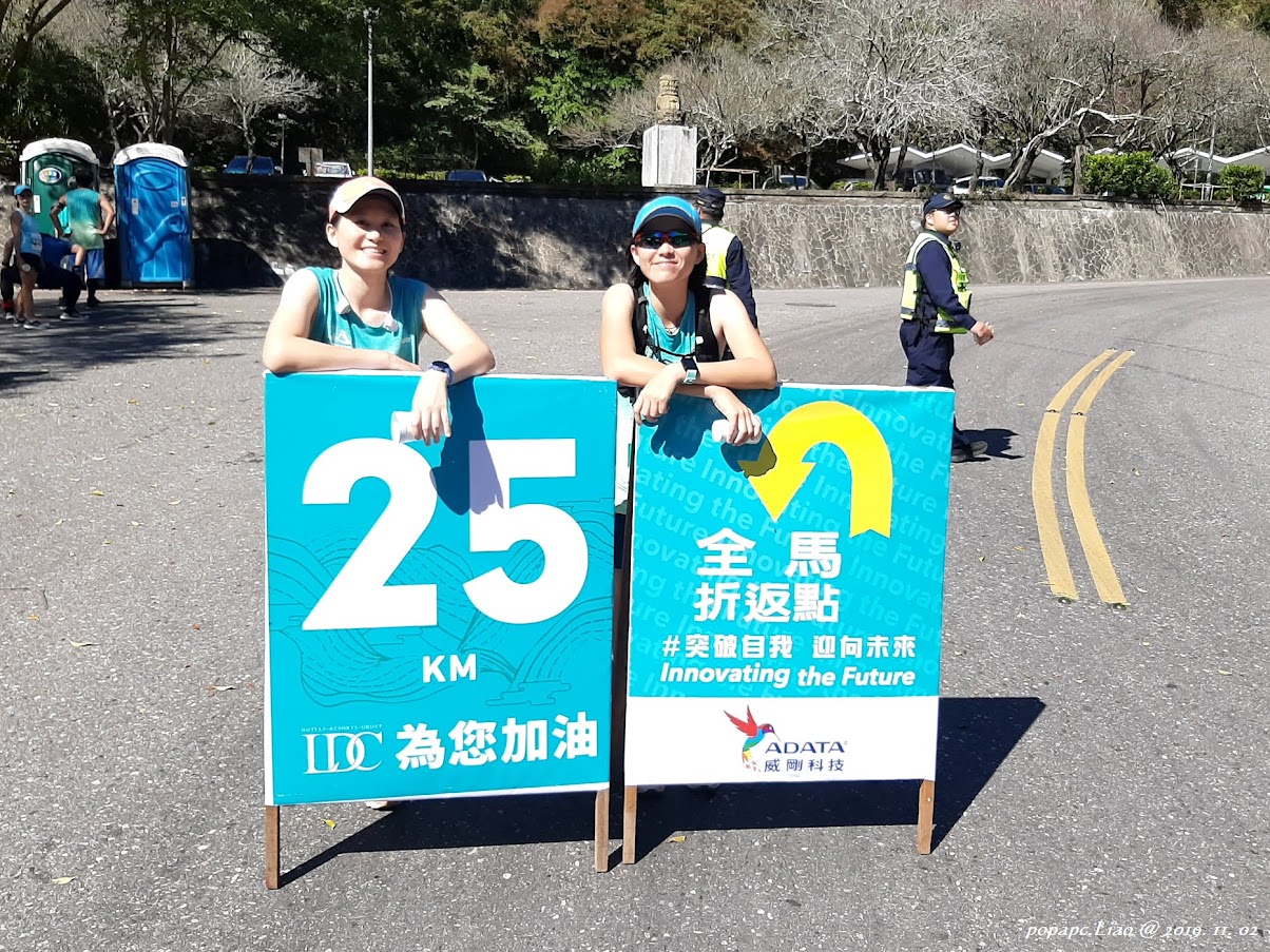 上午8:25看到「溪畔」牌子,歷時1小時40分鐘,半馬折返點到了。出發前,跟怡真約過在半馬折返點等相會,但忘了是否達成共識。隨著溪畔指標、溪畔壩發電廠、半馬折返點、溪畔隧道...一個個經過,怡真的身影遲遲未現,看來是真的沒有共識。