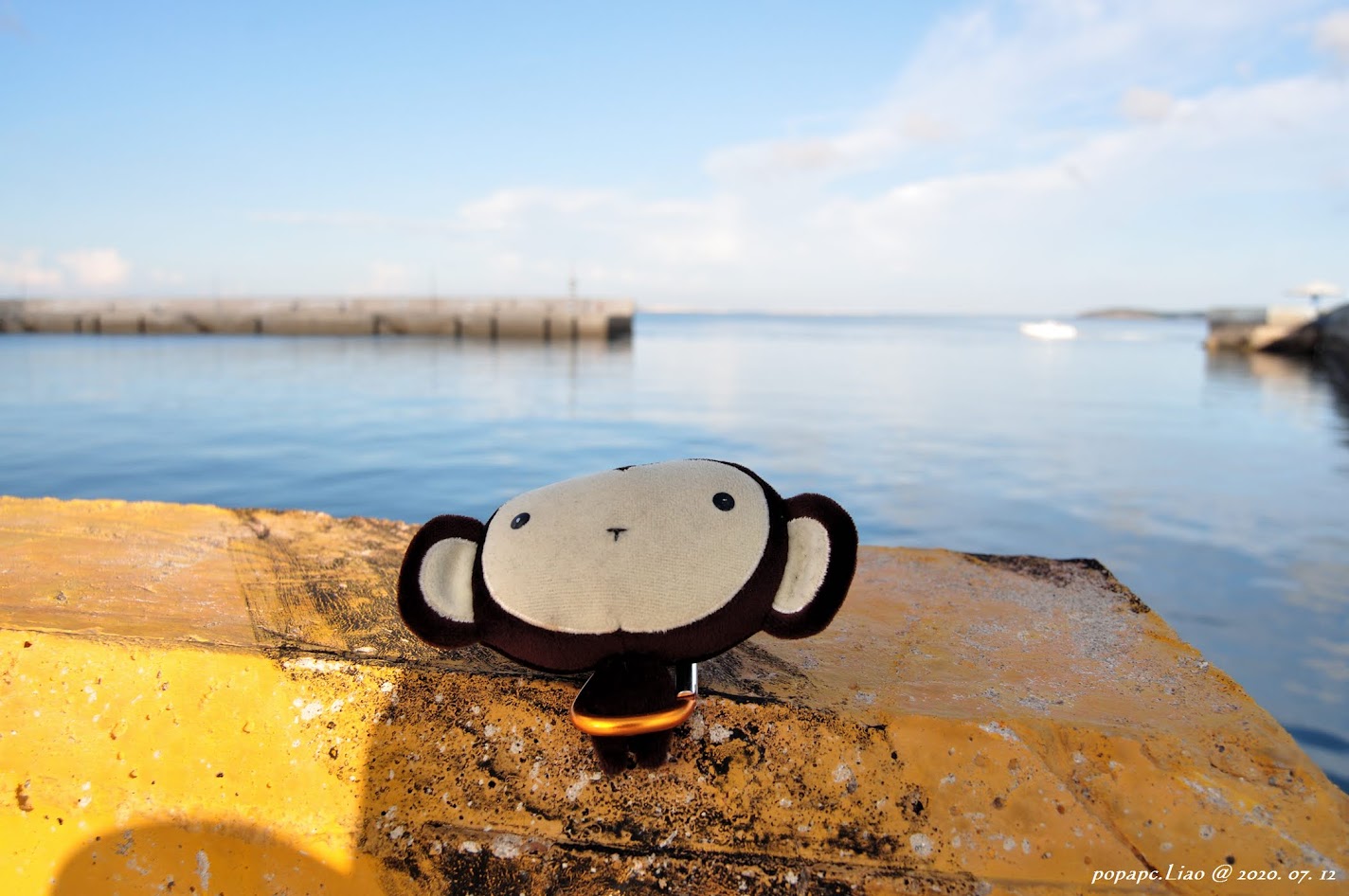 17:20左右抵達赤崁漁港,接近澎湖本島的最北端,漁港旁是北海遊客中心,要去吉貝嶼的可以從這搭船。趁著空檔的30分鐘,我們在杳無人煙的赤崁漁港閒逛,天空是淡藍的,海水是湛藍的,好一片平靜的景色。